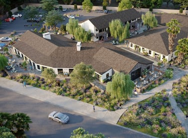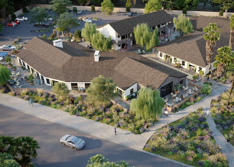 Transforming an existing set of buildings into a dining and shoppping destination was the design brief for the project along the pacific coast.