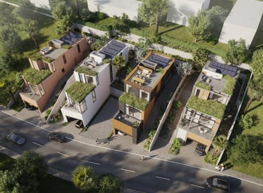 The planning department requested that each house has its own design - we've settled on a pink one, an angled one, a black one, and concrete frame one. The planner and local community have all responded enthusiastically to the designs and welcome the development. In colab. with Kap Studios.